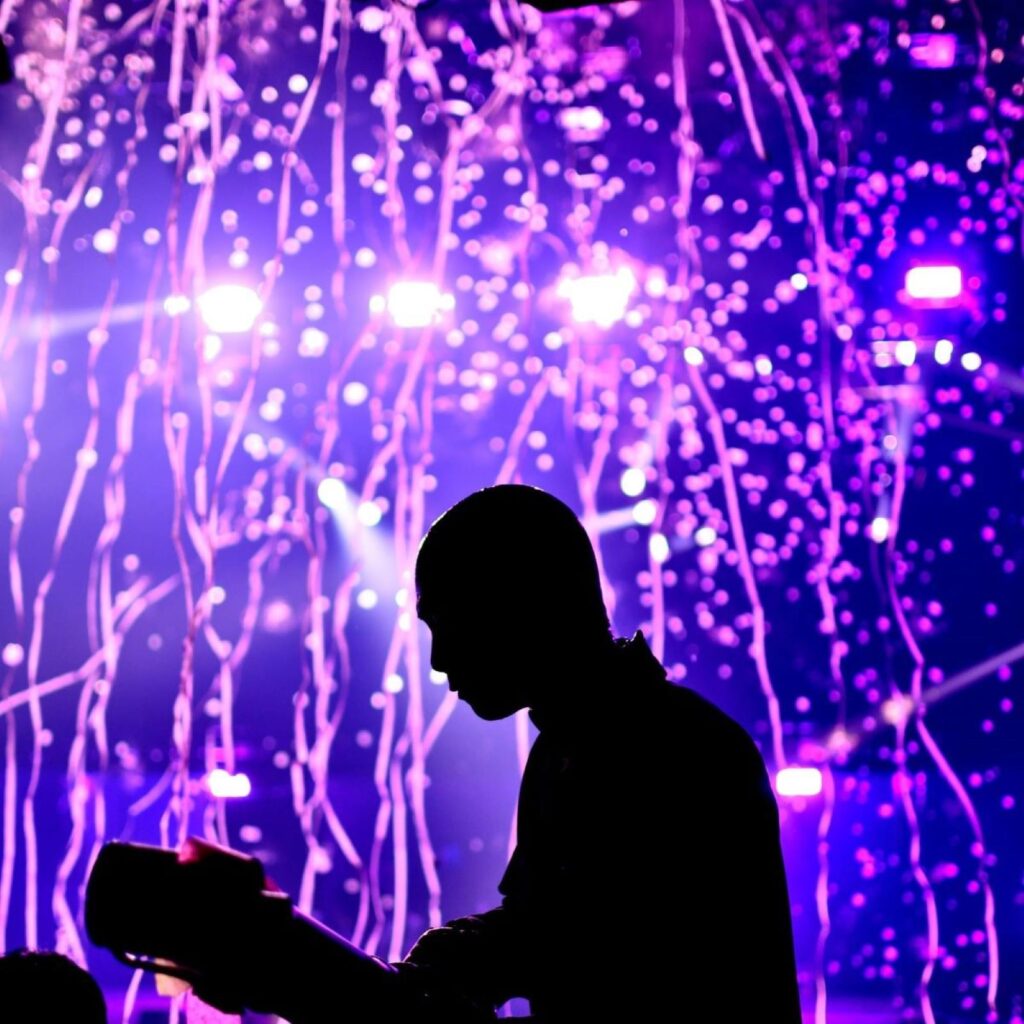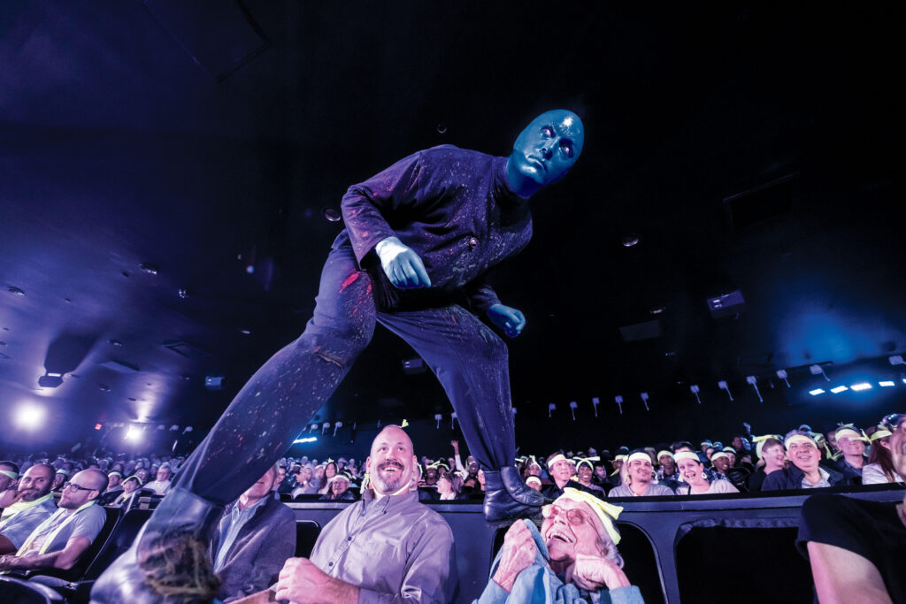 ステージから降り注ぐペイント、音、熱量。ブルーマンを“全身で体感する”特別なエリアです。